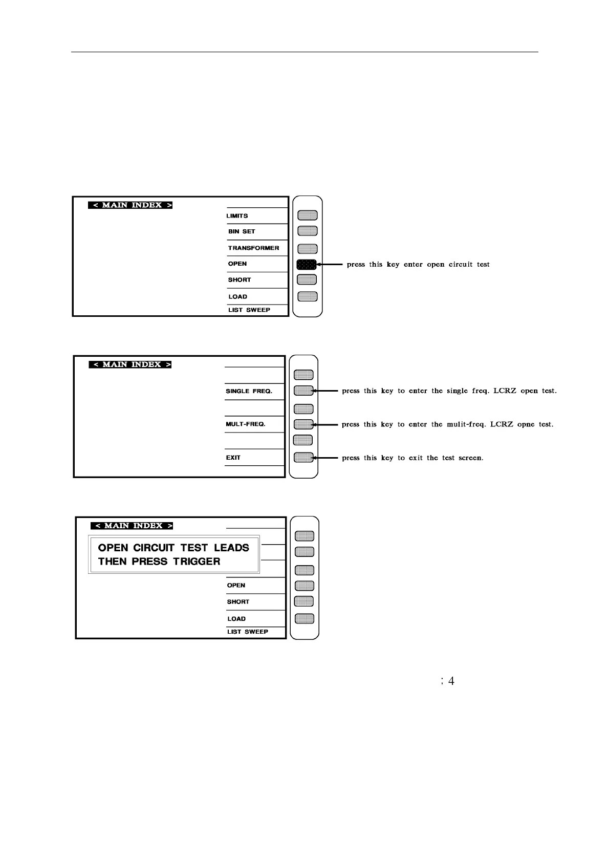 As above is to tell user, it is testing of open test, please prepare test cable and press [Trig] then