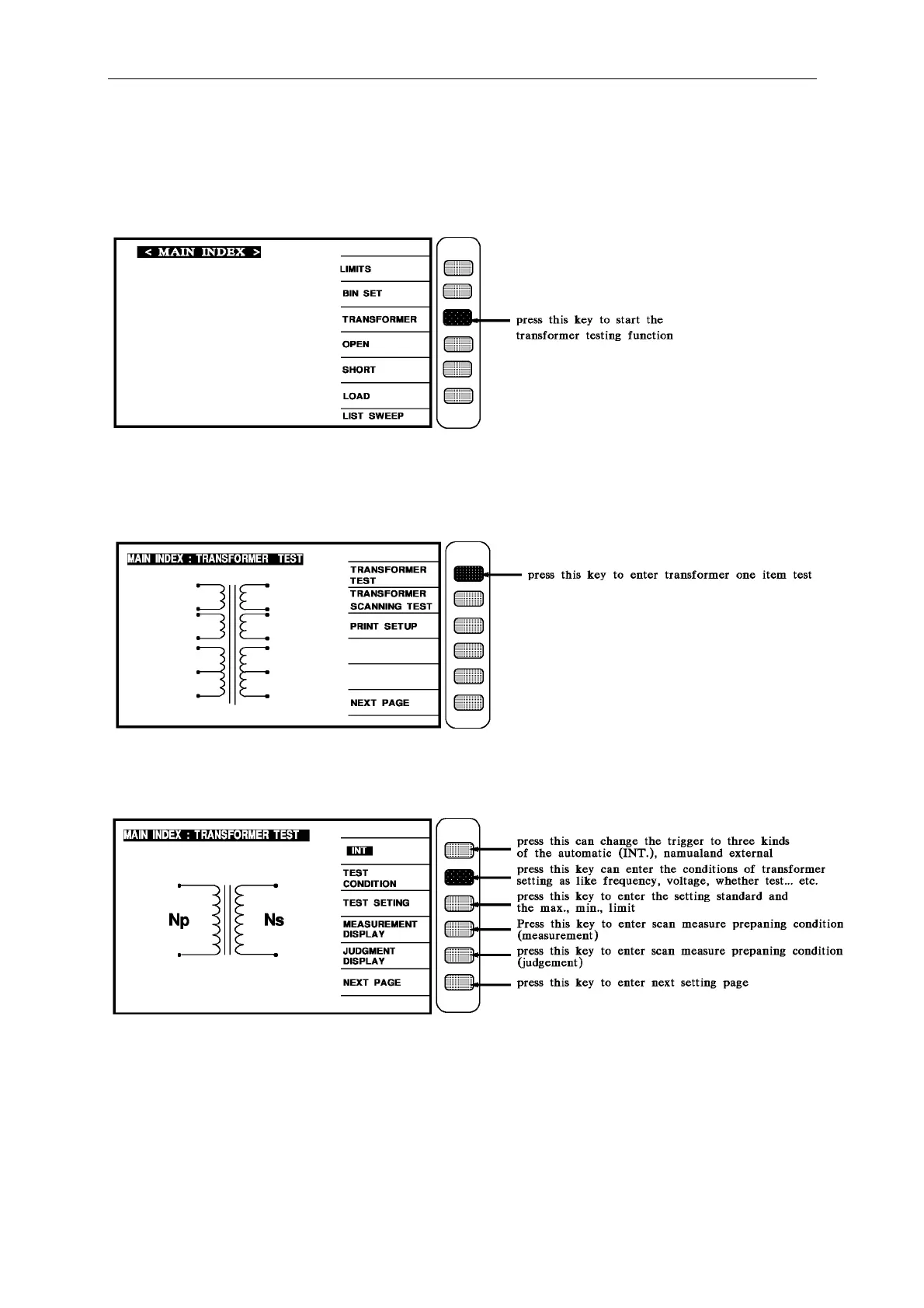 index, then press the transformer testing function key shows "TRANSFORMER", it will show