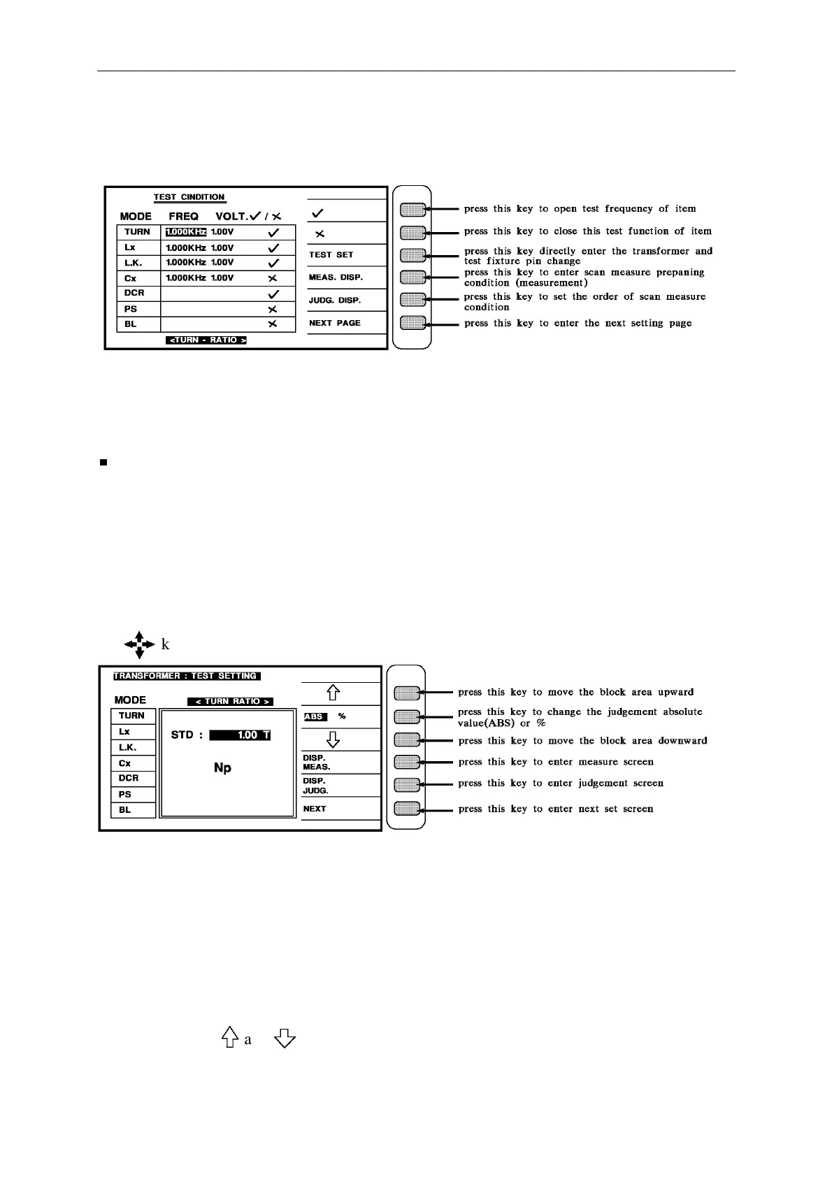TURN : transformer turn ratio and phase test Lx : transformer inductance test