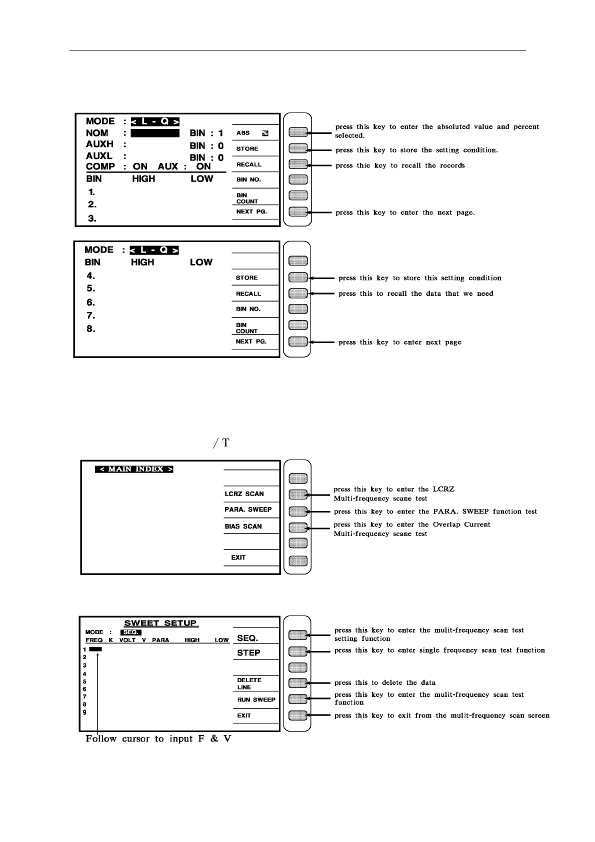 After press [BIN SET] key, the screen shows as below: