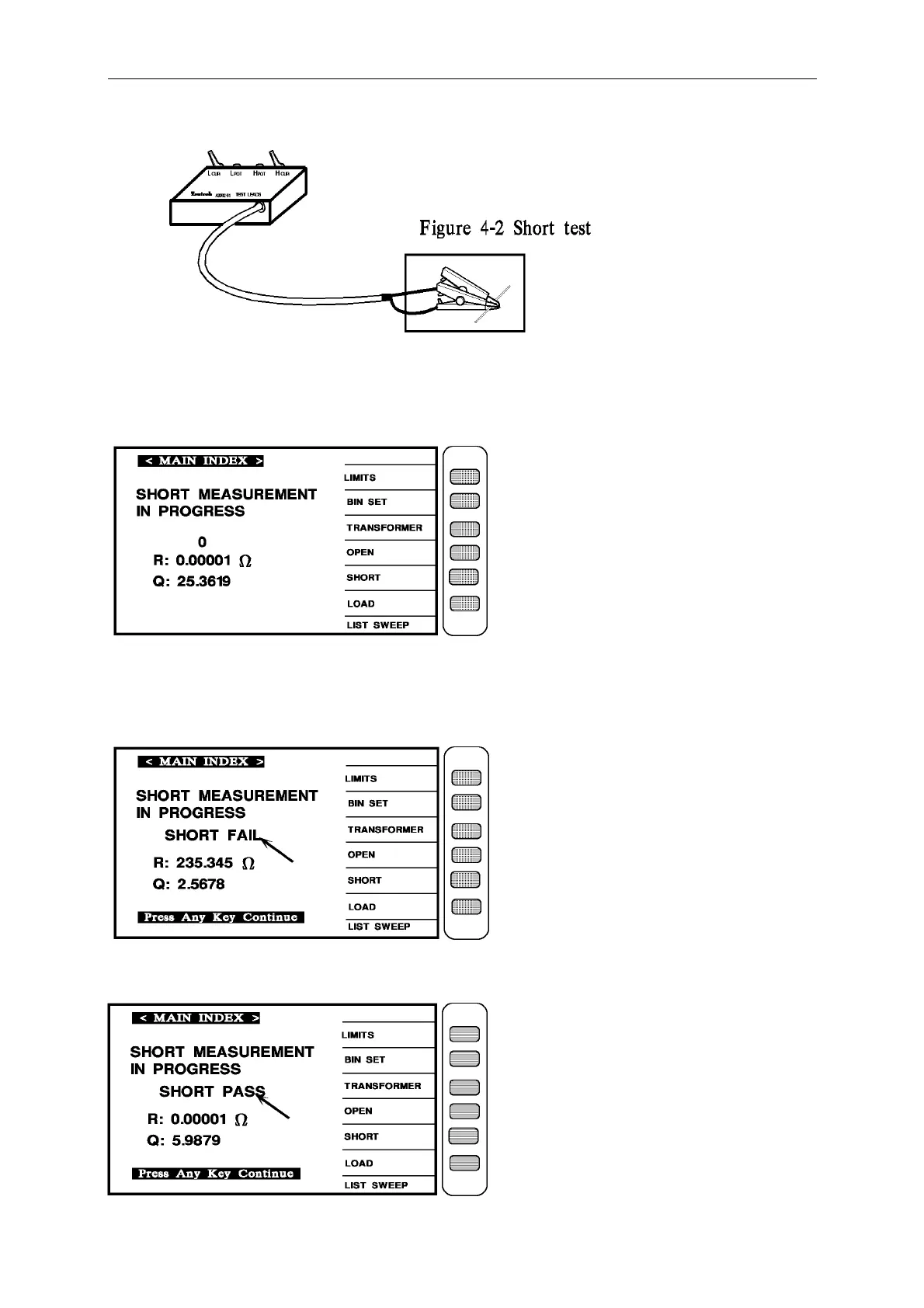 If there is any wrong, the screen will show [SHORT FAIL], it mean the procedure of short test