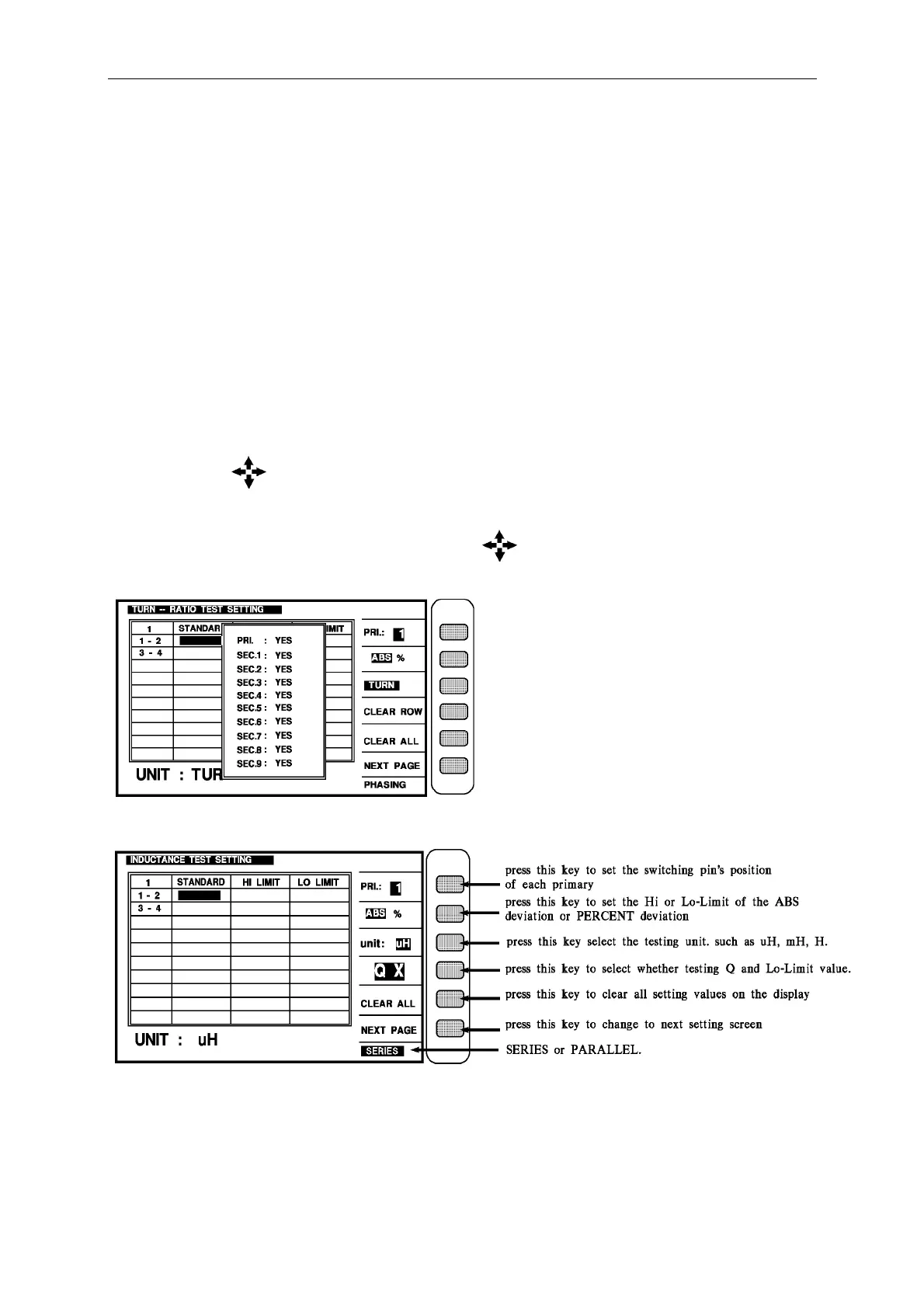 The following screen is for setting the TURN RATIO JUDGMENT of the transformer.