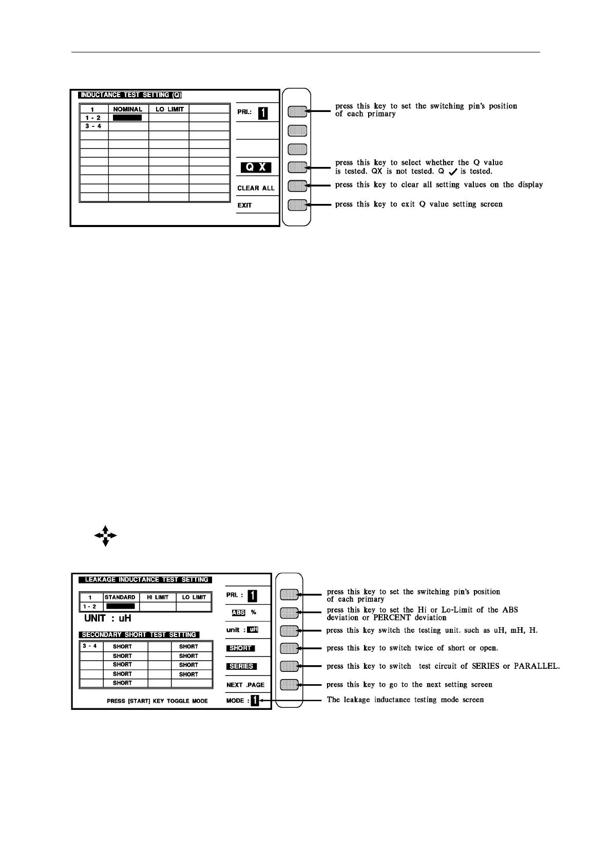 But when the screen is Q value setting must press [EXIT] key to escape to inductance setting.