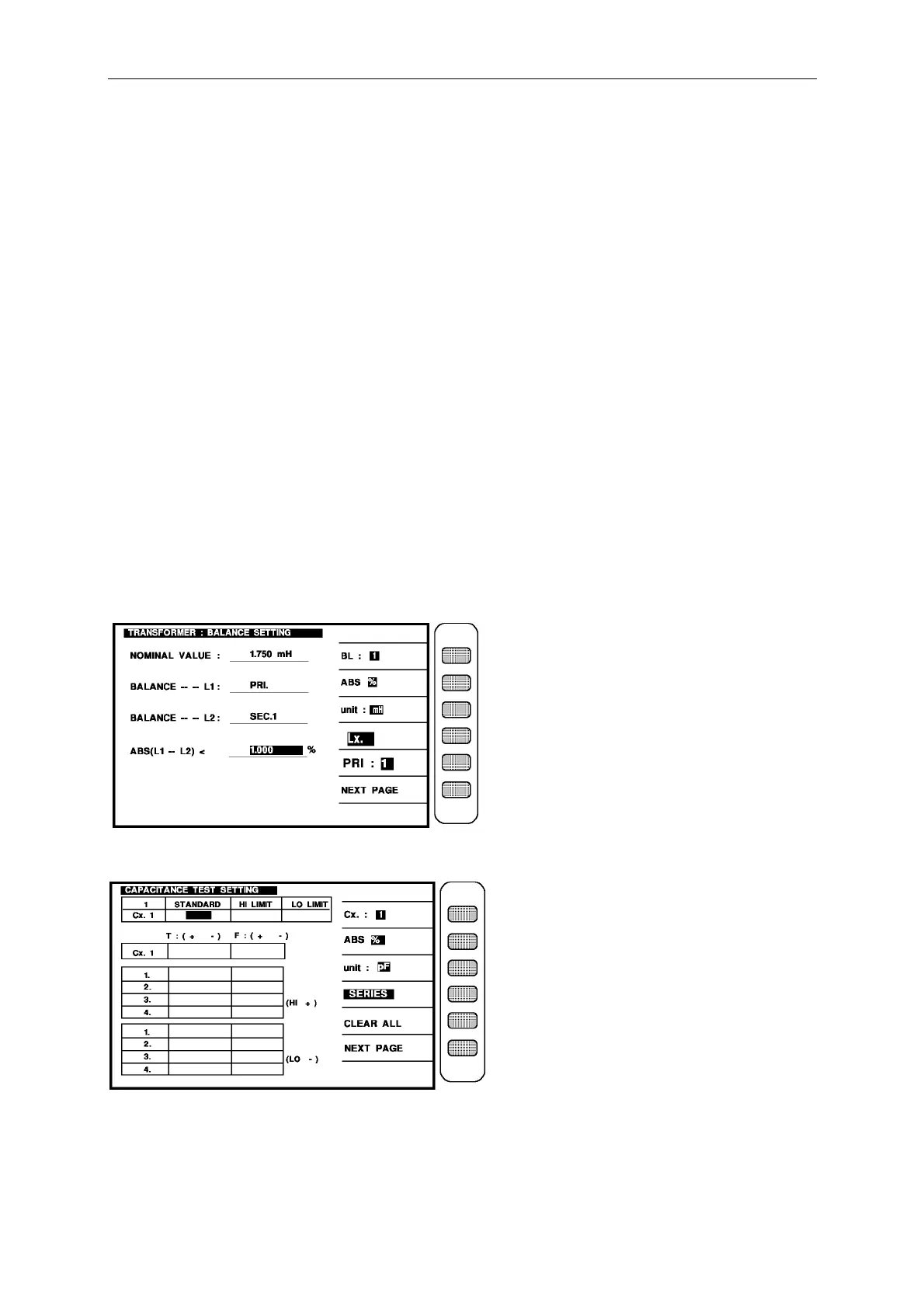 Press [ENTER] again then enter next setting screen as below : (CAPACITANCE)