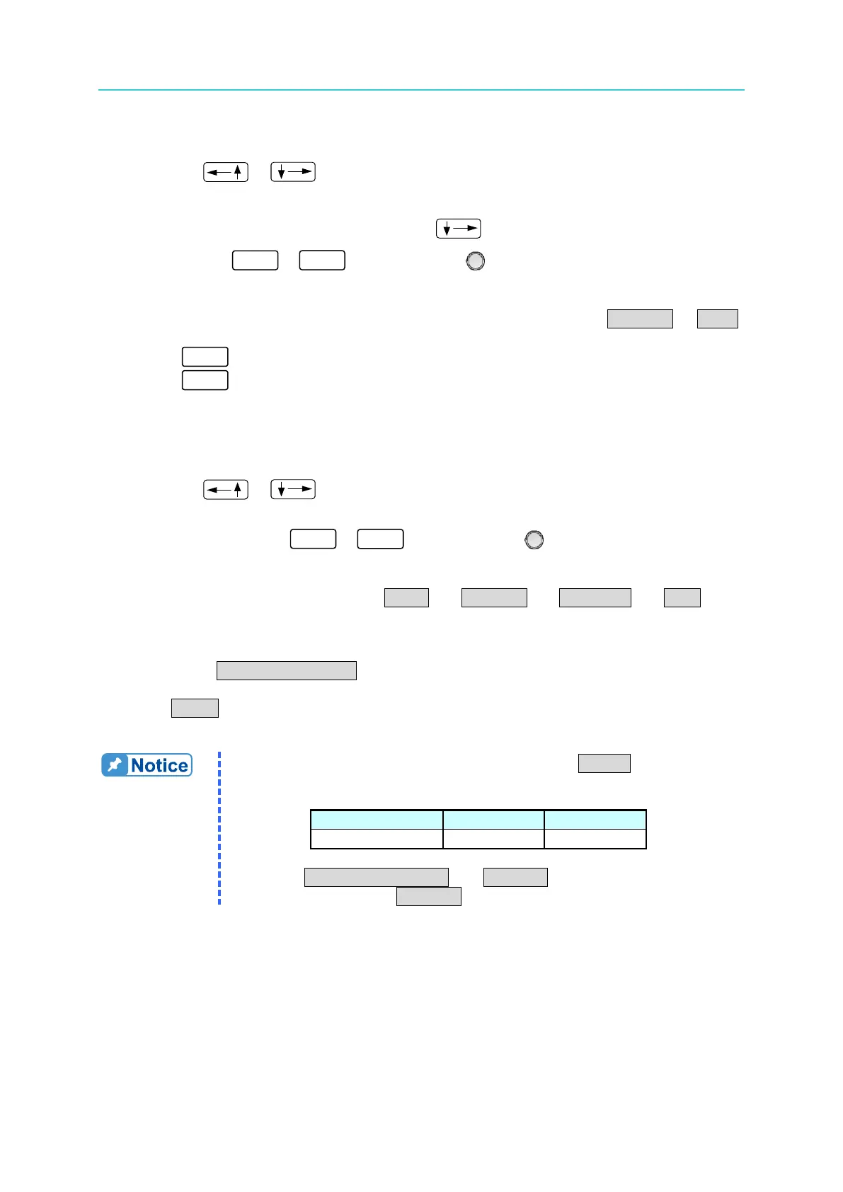 1. Use the “ ”, “ ” keys to move the cursor to the column to be set as shown in