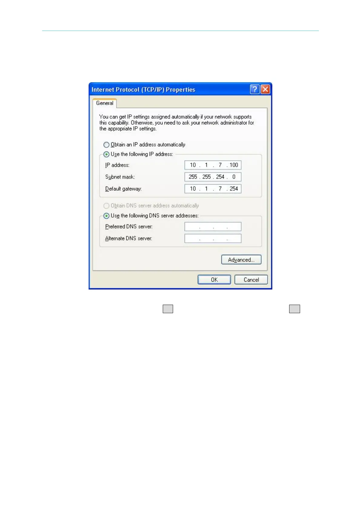 Select “Use the following IP address” to manually set the IP address. Enter the desired IP