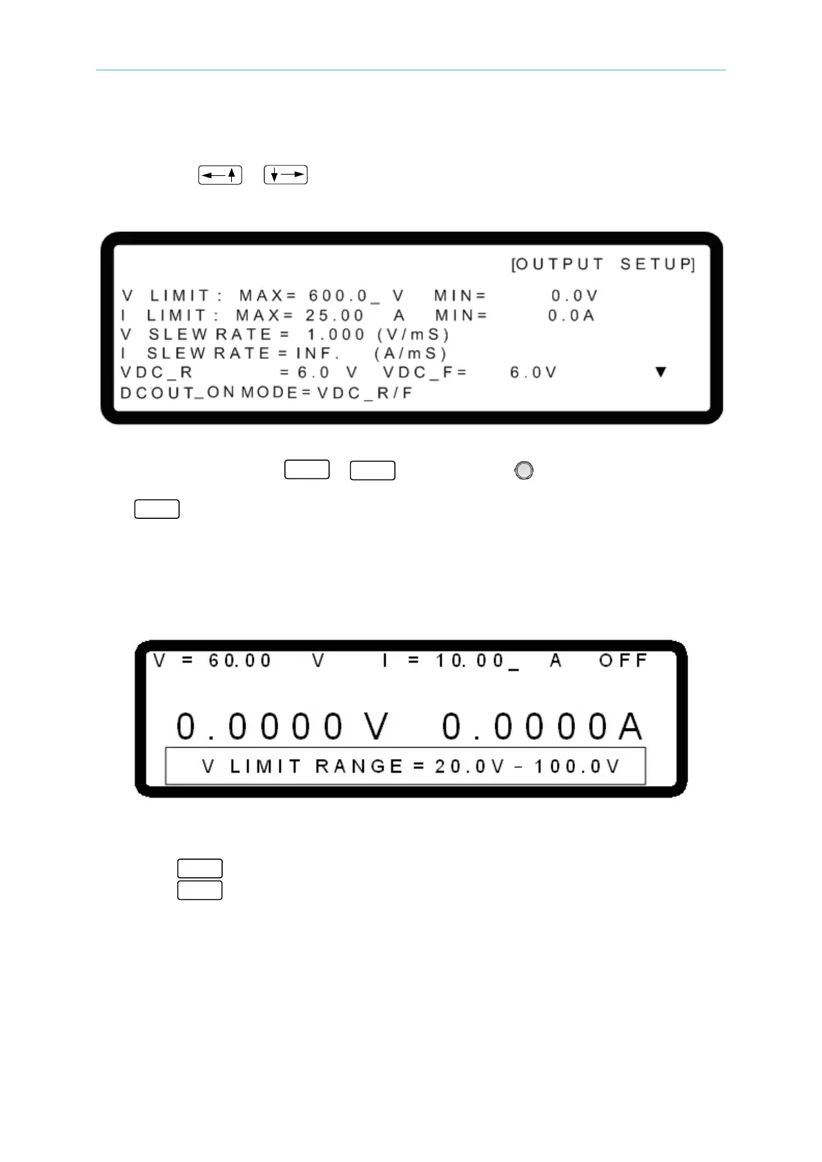 LIMIT is set to MAX=100V, MIN=20V and the setting exceeds the output voltage set by