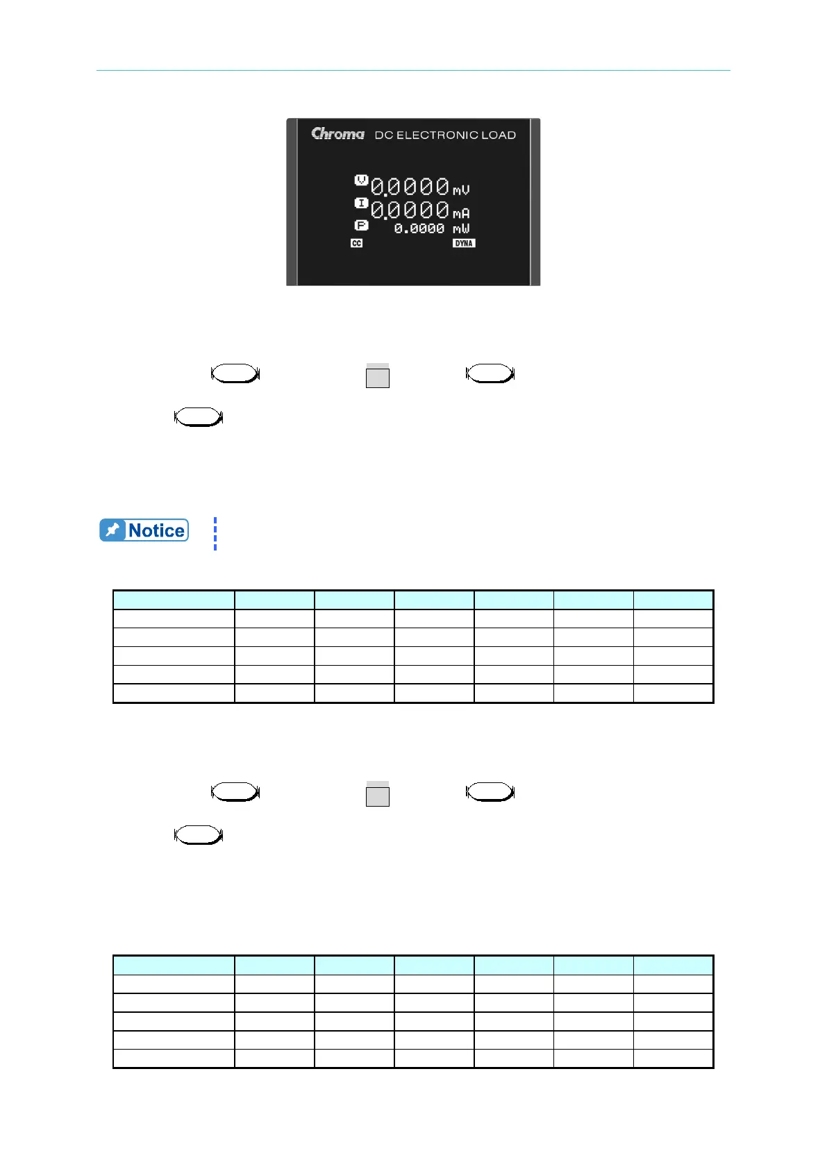 B. Press to enter into Dynamic Constant Current setting. The settings are listed in
