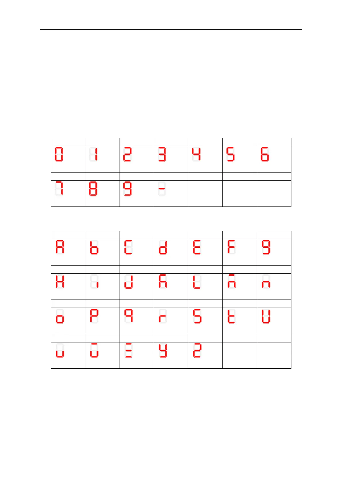 The following table shows the numbers and alphabets displayed by the 7-segment display of