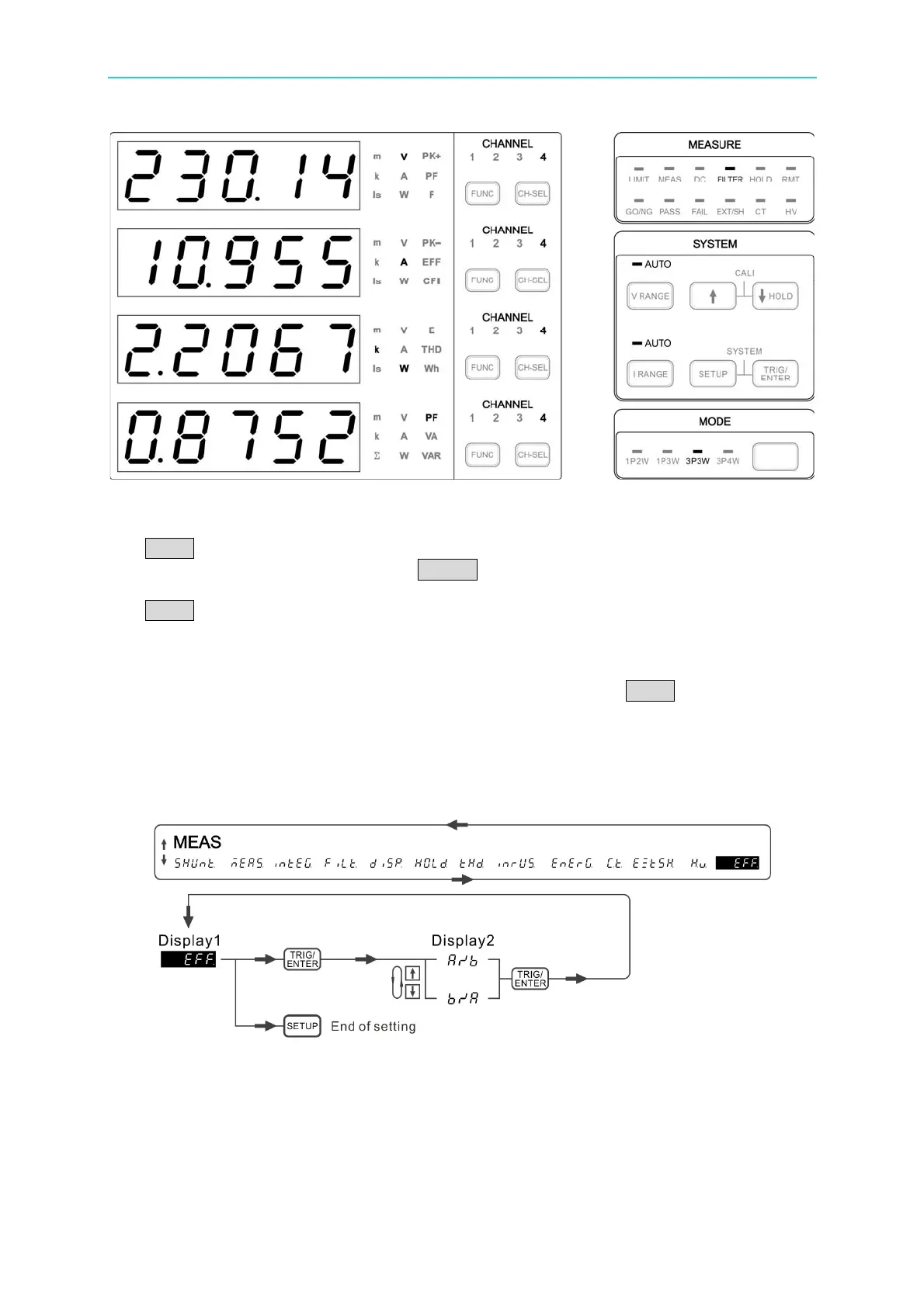 PF respectively, and then press the CHSEL of display 1~display 4 to set the channel to