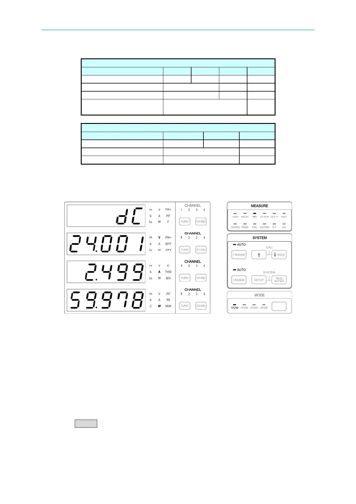 WIRE MODE CH1 CH2 CH3 CH4