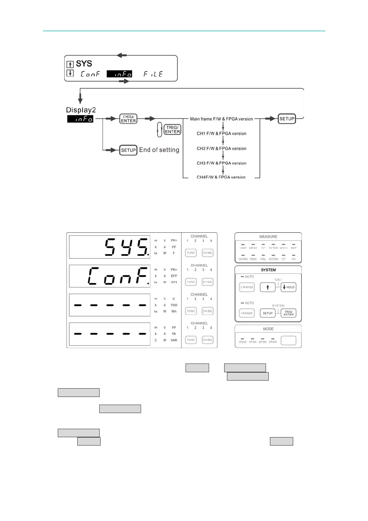 to enter into the system menu. Select Conf. and press TRIG/ENTER to confirm it.