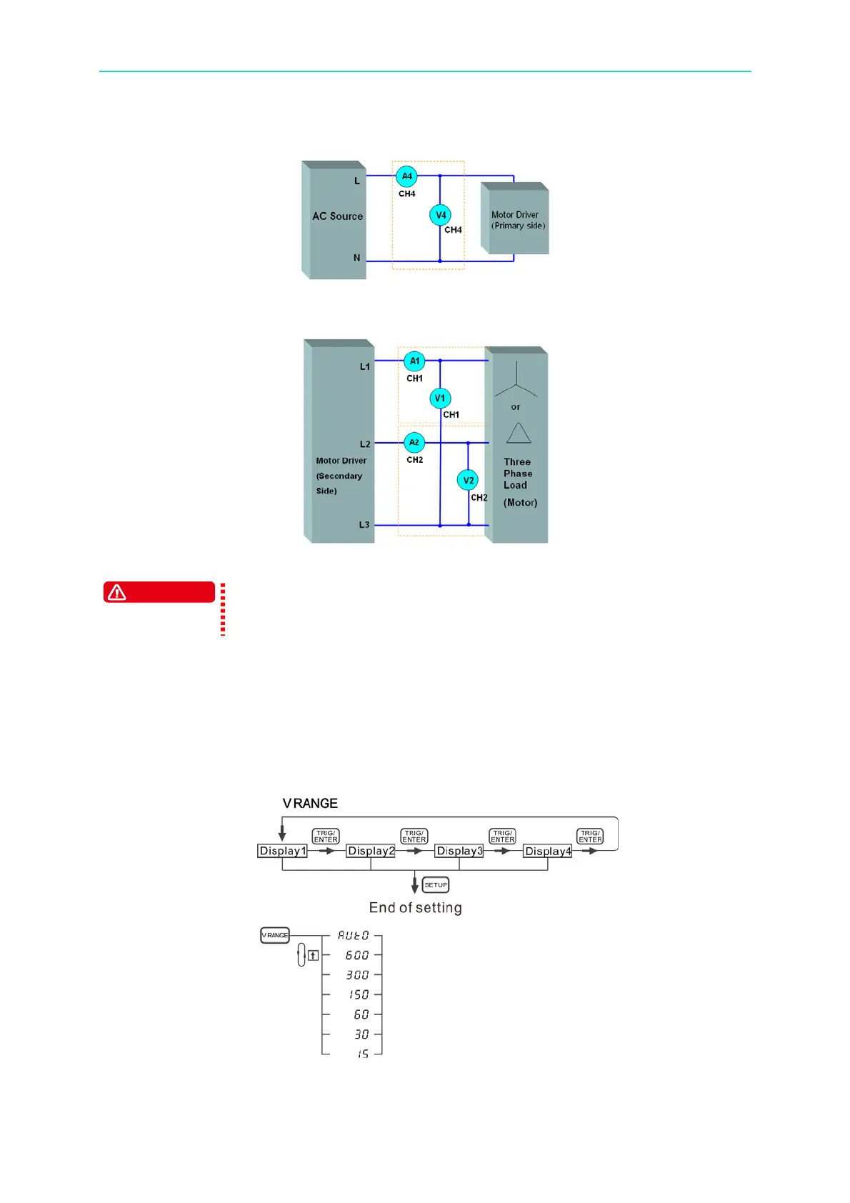 4. Use V RANGE key to select an appropriate voltage range for each channel to conduct