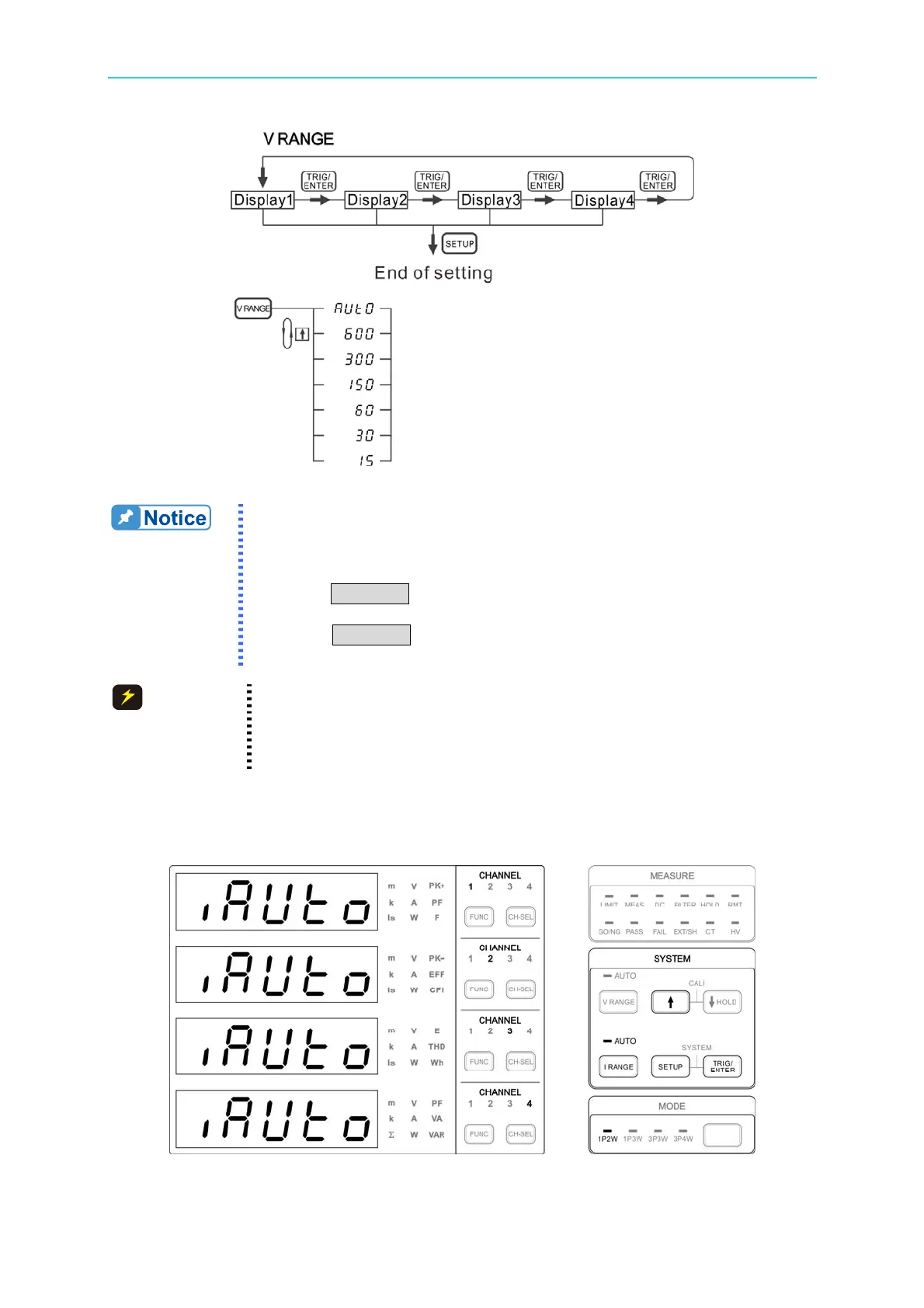 1. If any of the channel’s voltage range is set to Manual, the AUTO