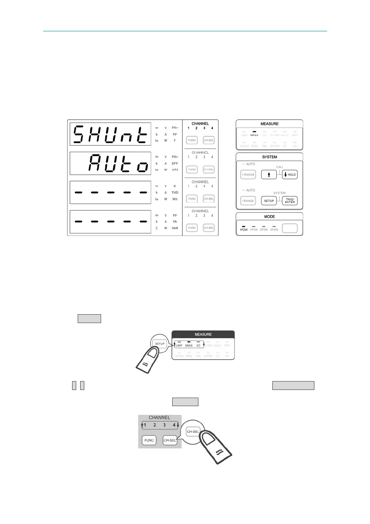 3. Before setting any parameters, press CH-SEL to select the desired channel for testing.