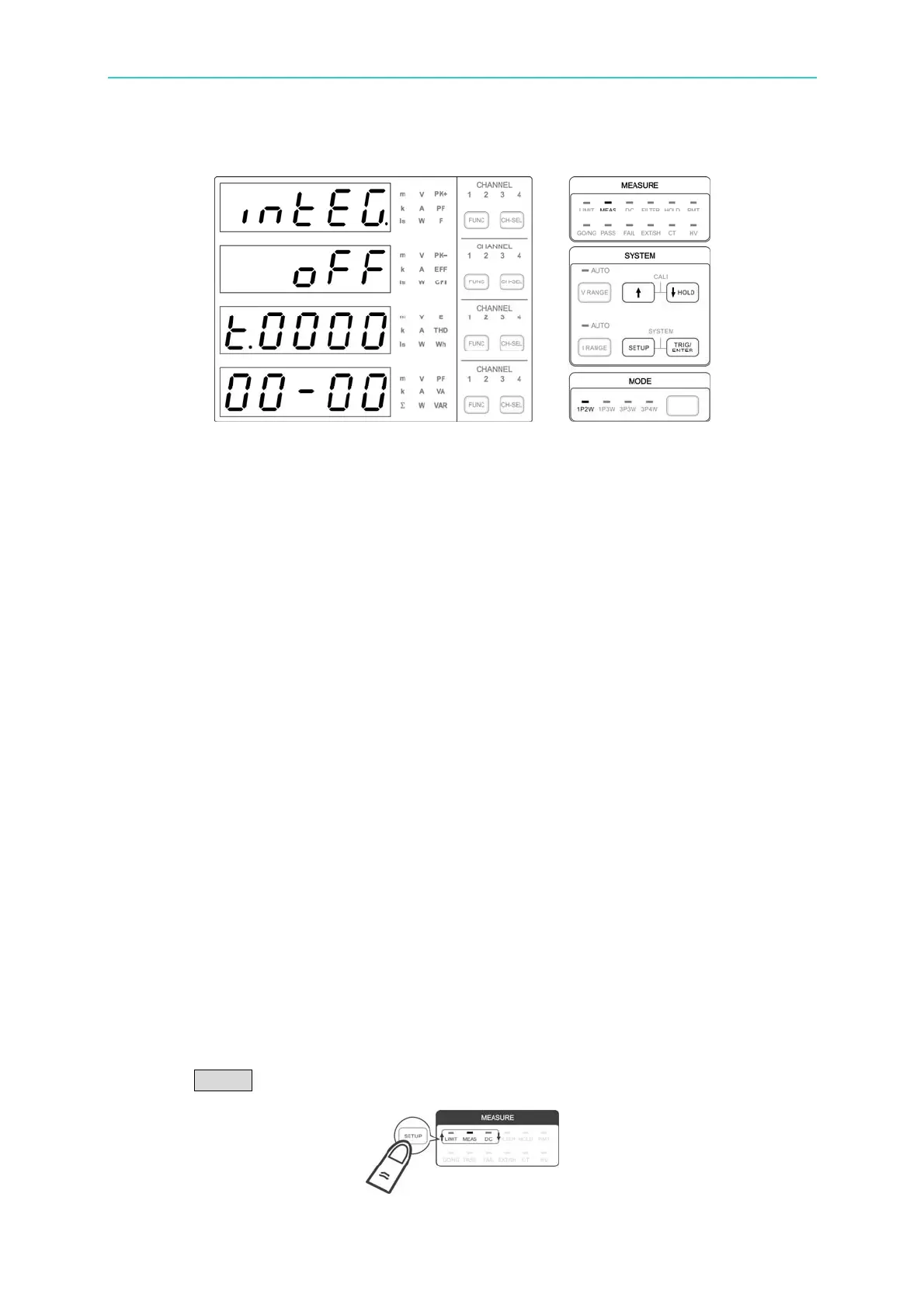1. Press SETUP and select Meas. The Meas indicator is on indicating it is in Meas menu.