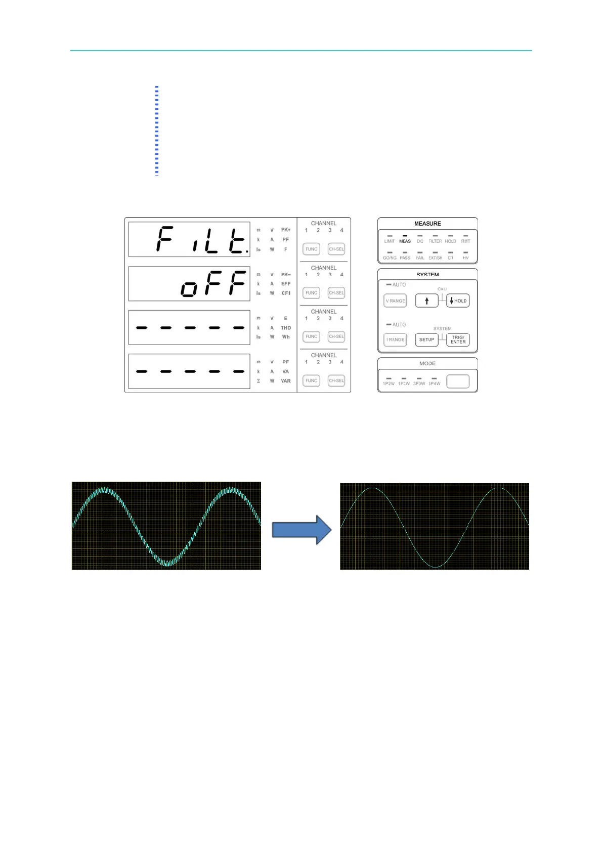 the filter’s bandwidth, it is suggested to turn off the filter and then perform the measurement.