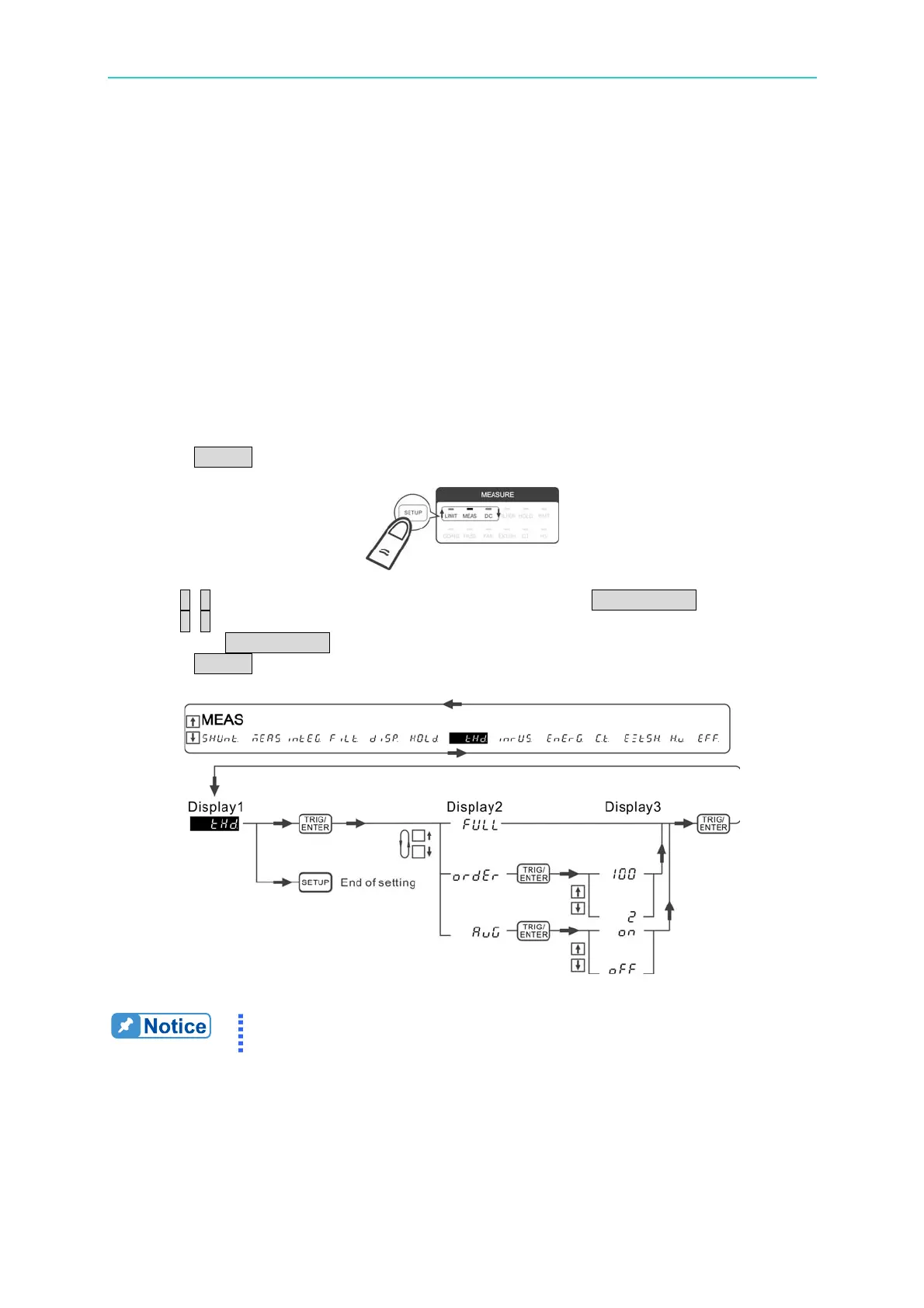 1. Press SETUP to select Meas. The Meas indicator is on indicating it is in Meas menu.