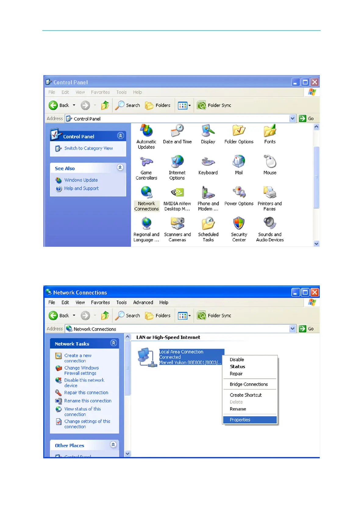 Click [Control Panel] on the PC and [Network Connection].
