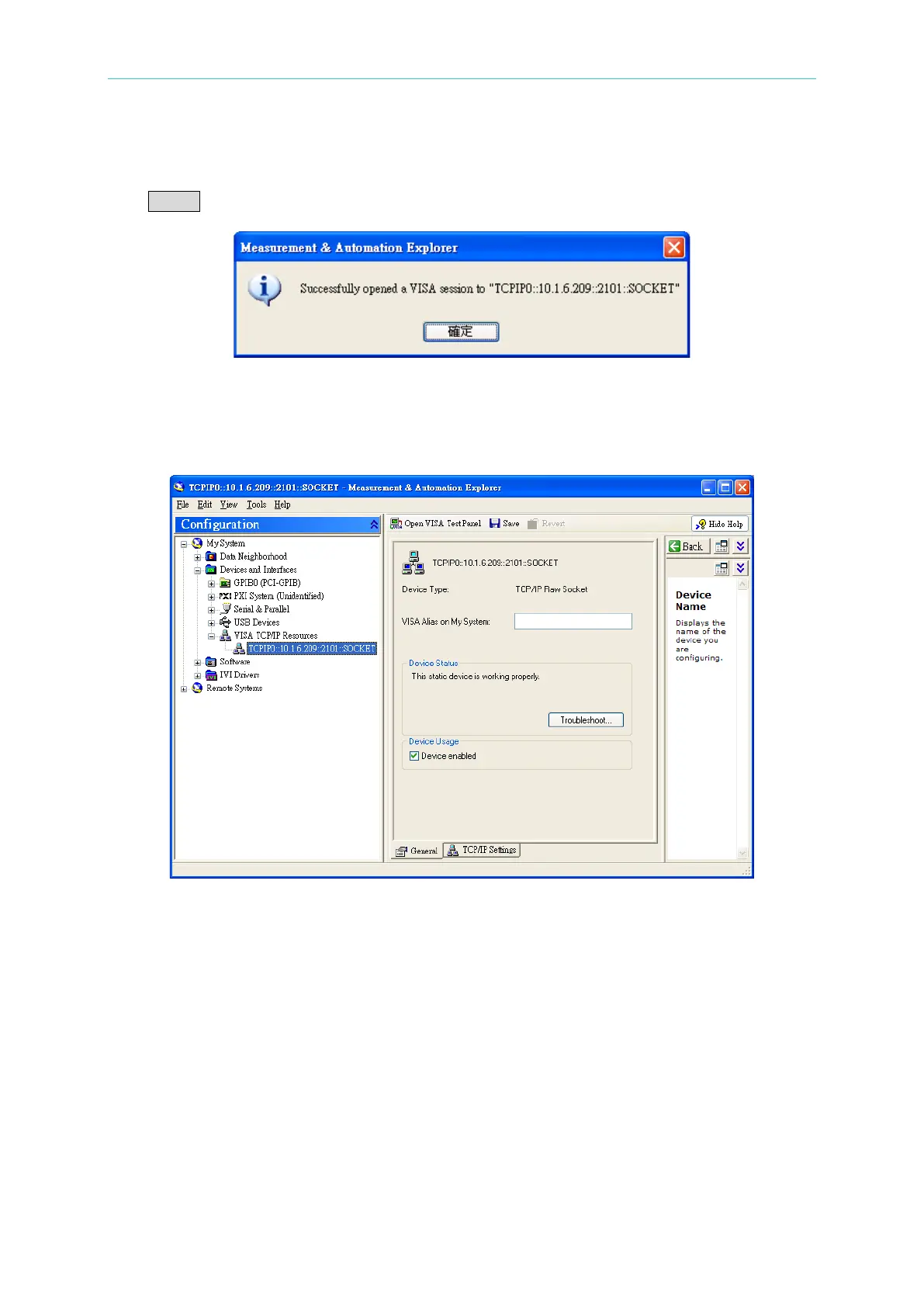A VISA TCP/IP Resource will be added to the Configuration list under Devices and Interfaces.
