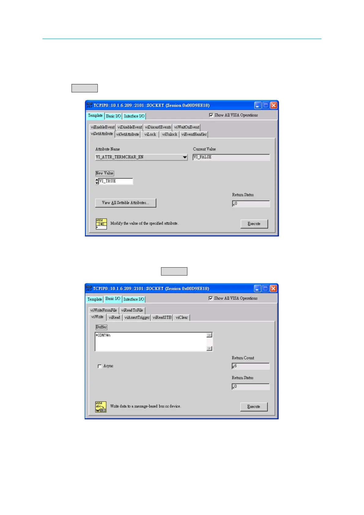 (using *IDN? as the example) and click Execute.