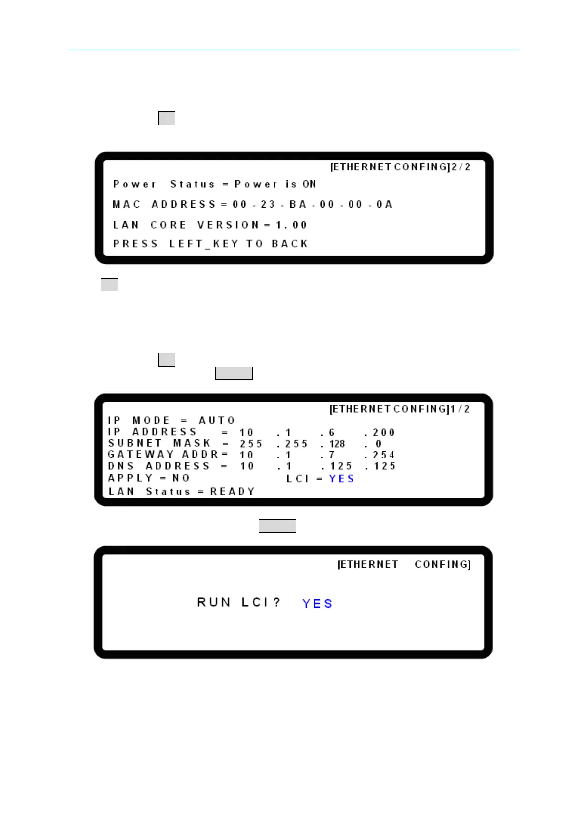 Continue to press ↓→ in the [ETHERNET CONFIG] 1/2 page until it reaches LCI, turn the
