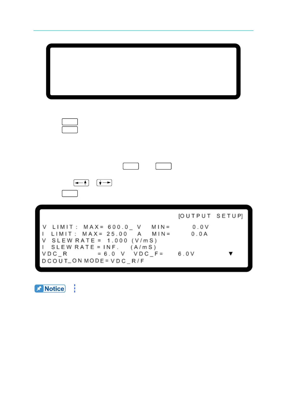 1. In the Config Setup page, press “ ” then “ ” to enter into the Output Setup