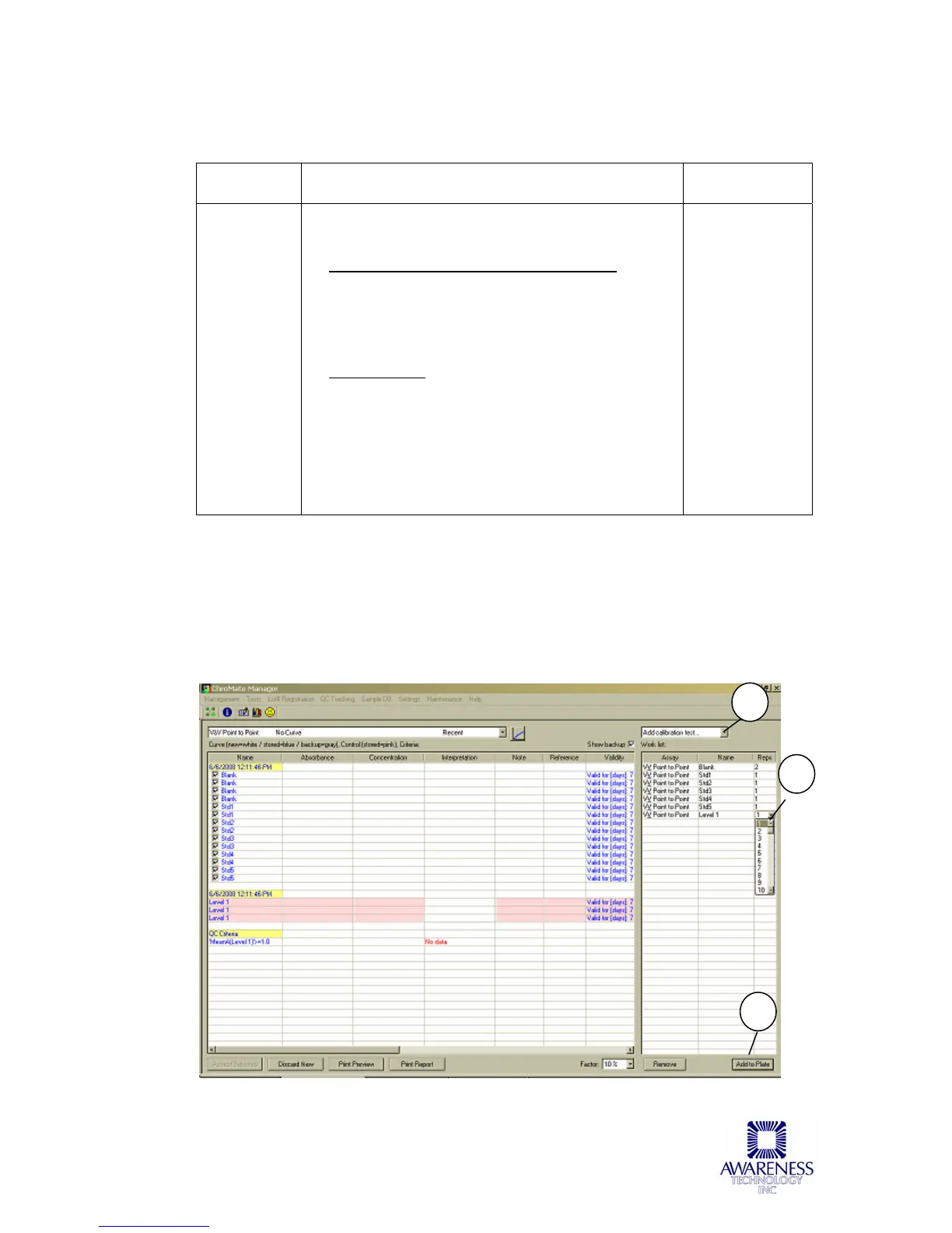 (calibrators, controls) and calibration curves.