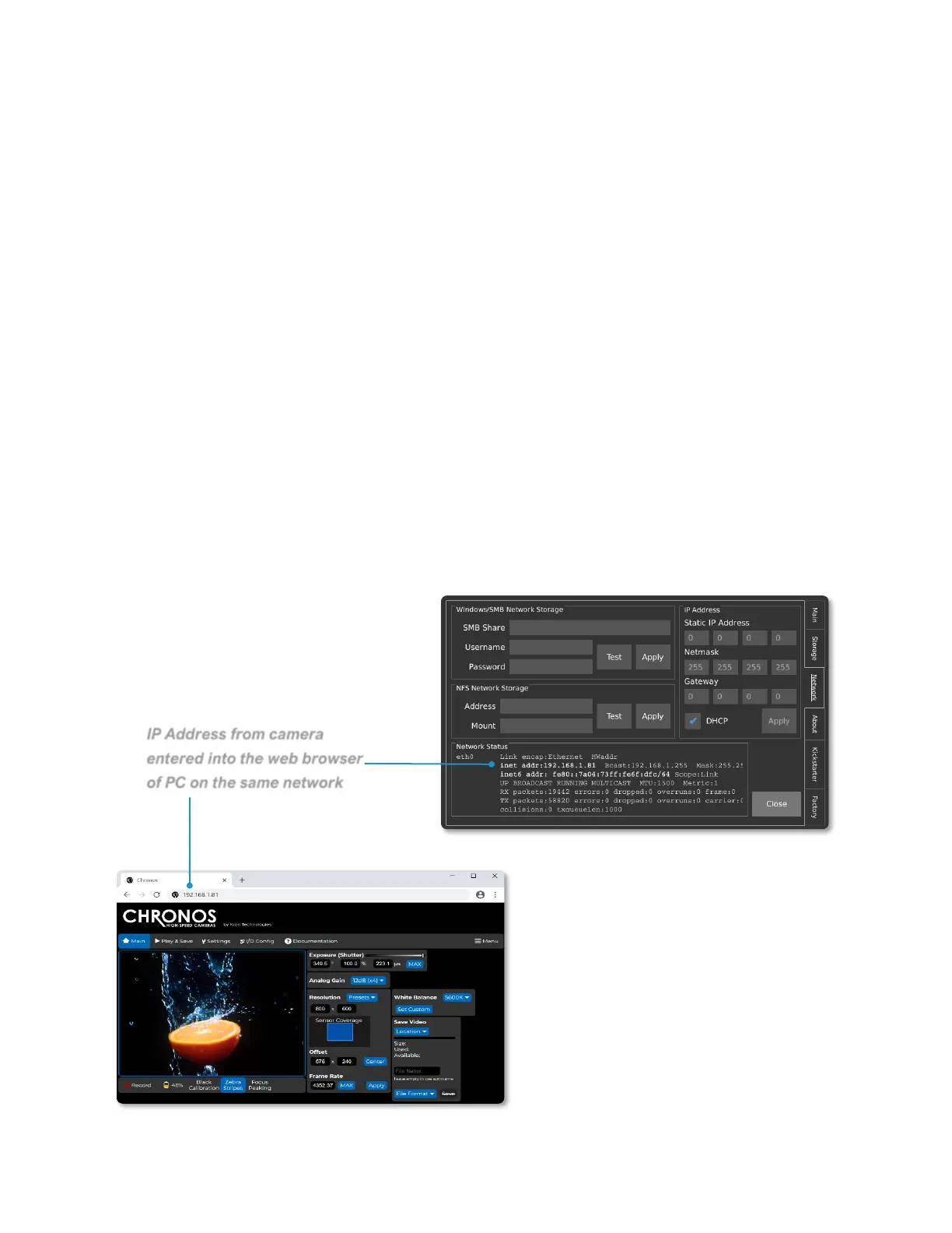 The Chronos can be controlled remotely via a webpage that is served by the camera