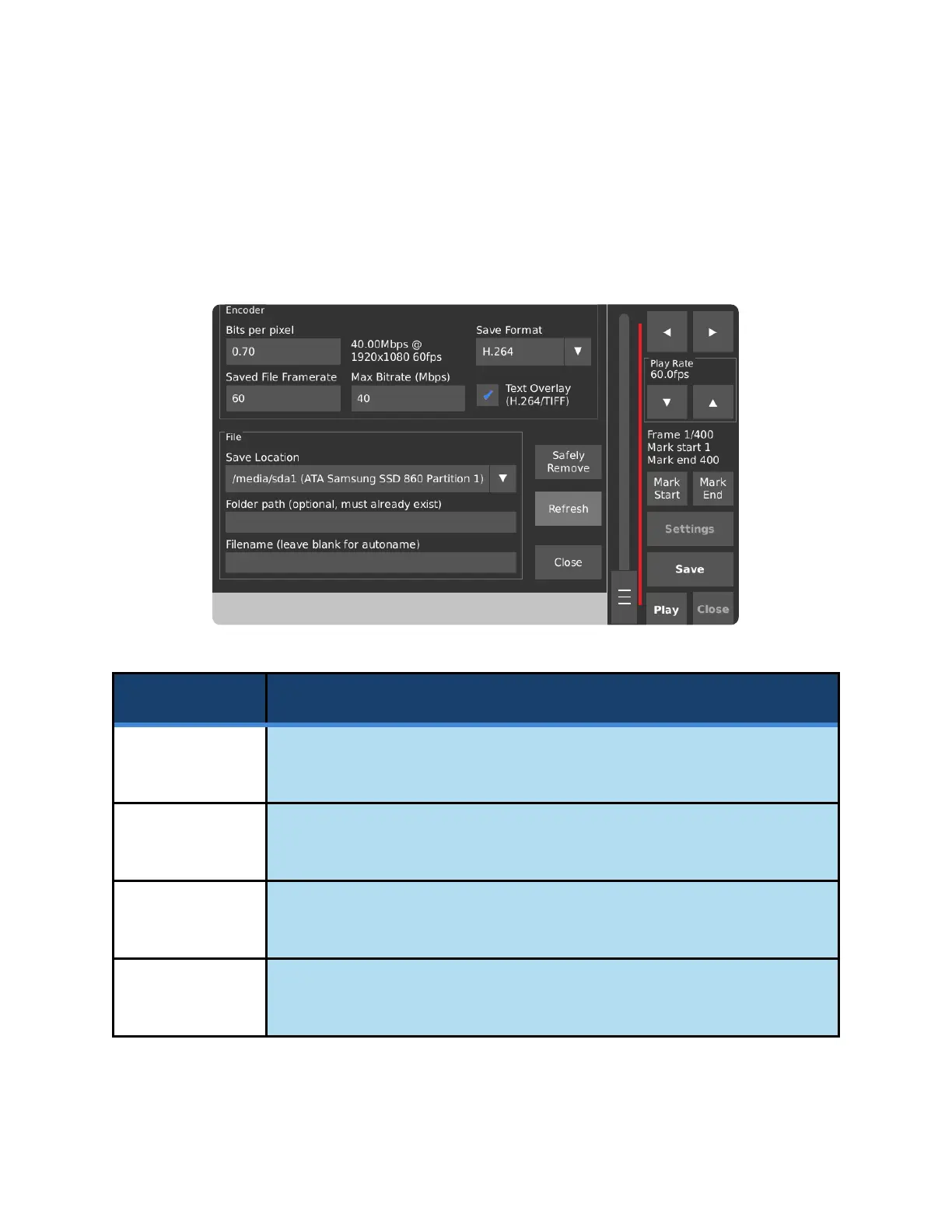 was attached to the camera. Bits per pixel, Saved File Framerate and Max Bitrate are only used when