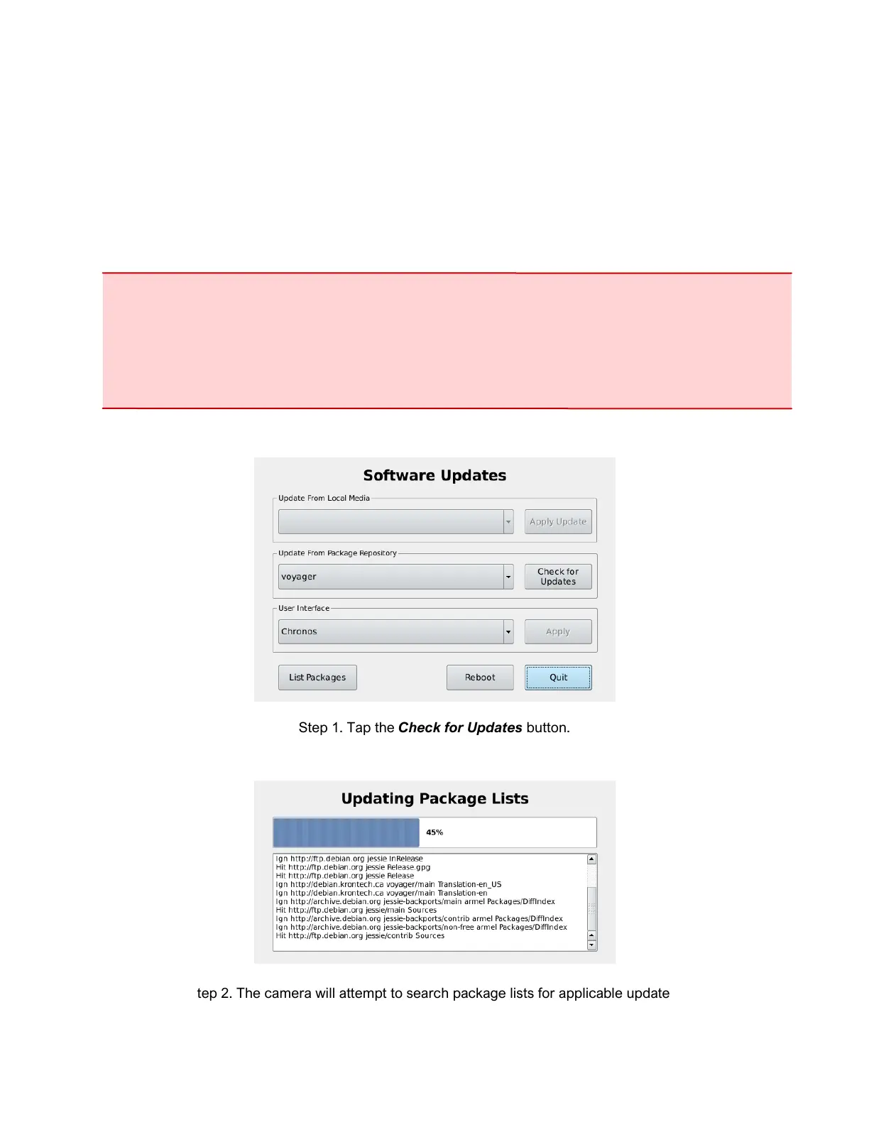 Step 2. The camera will attempt to search package lists for applicable updates.