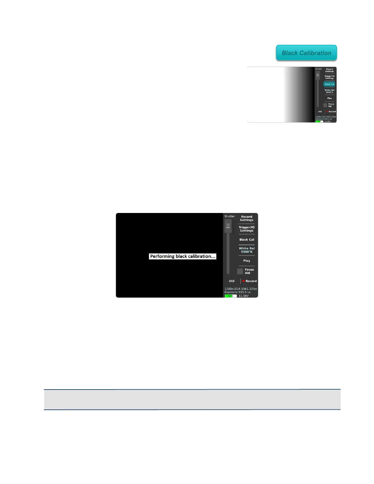 IMPORTANT: Perform a Black Calibration after changing the resolution, frame rate or shutter