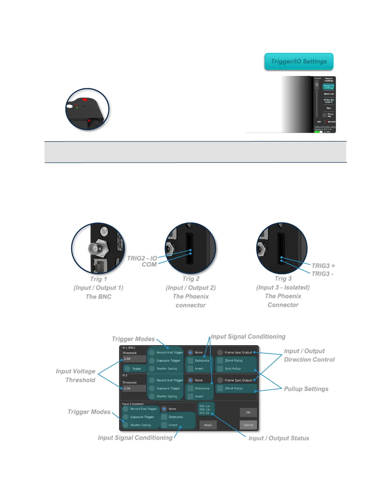 Triggers are configured in the “Trigger/IO Settings” menu: