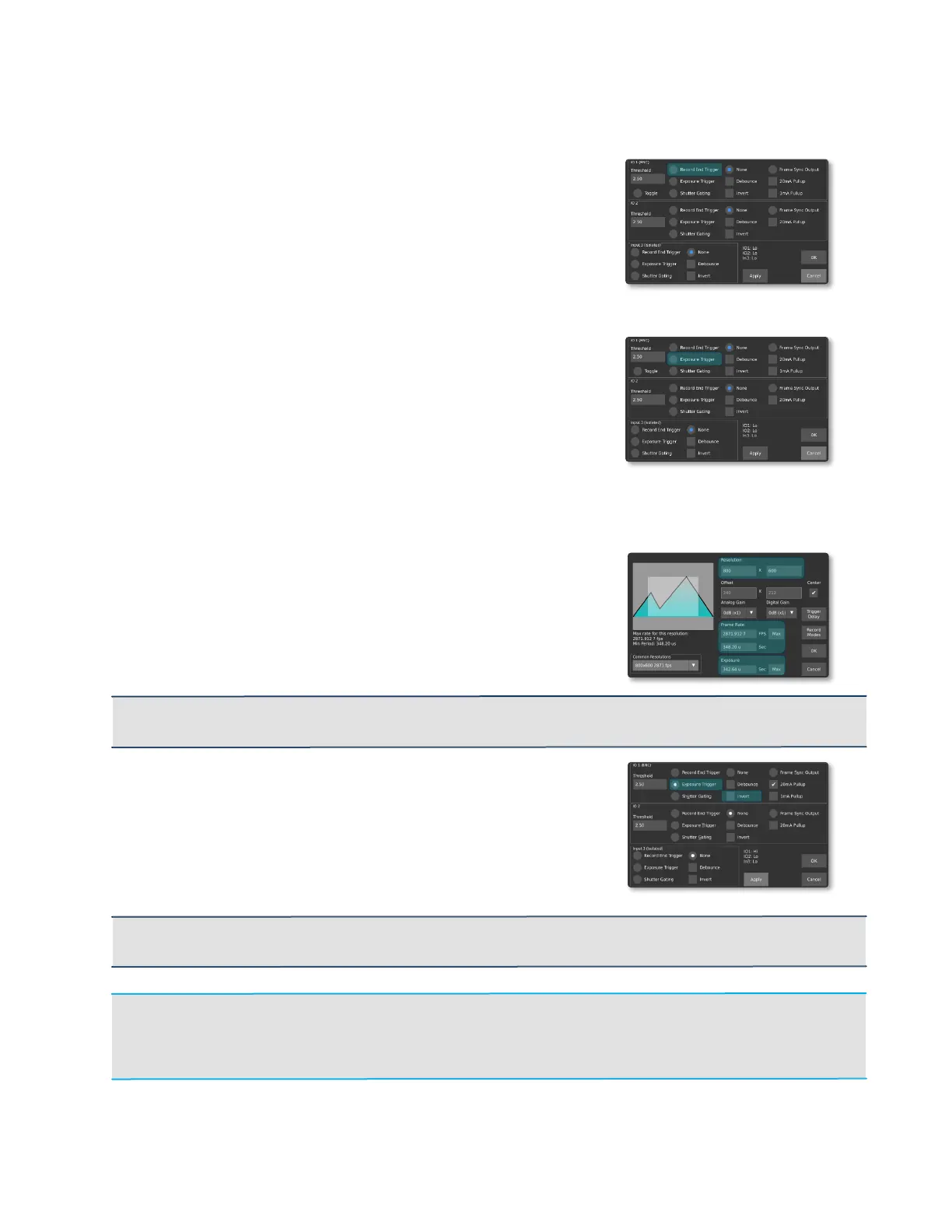 Steps to follow to configure the camera properly to use the Exposure trigger: