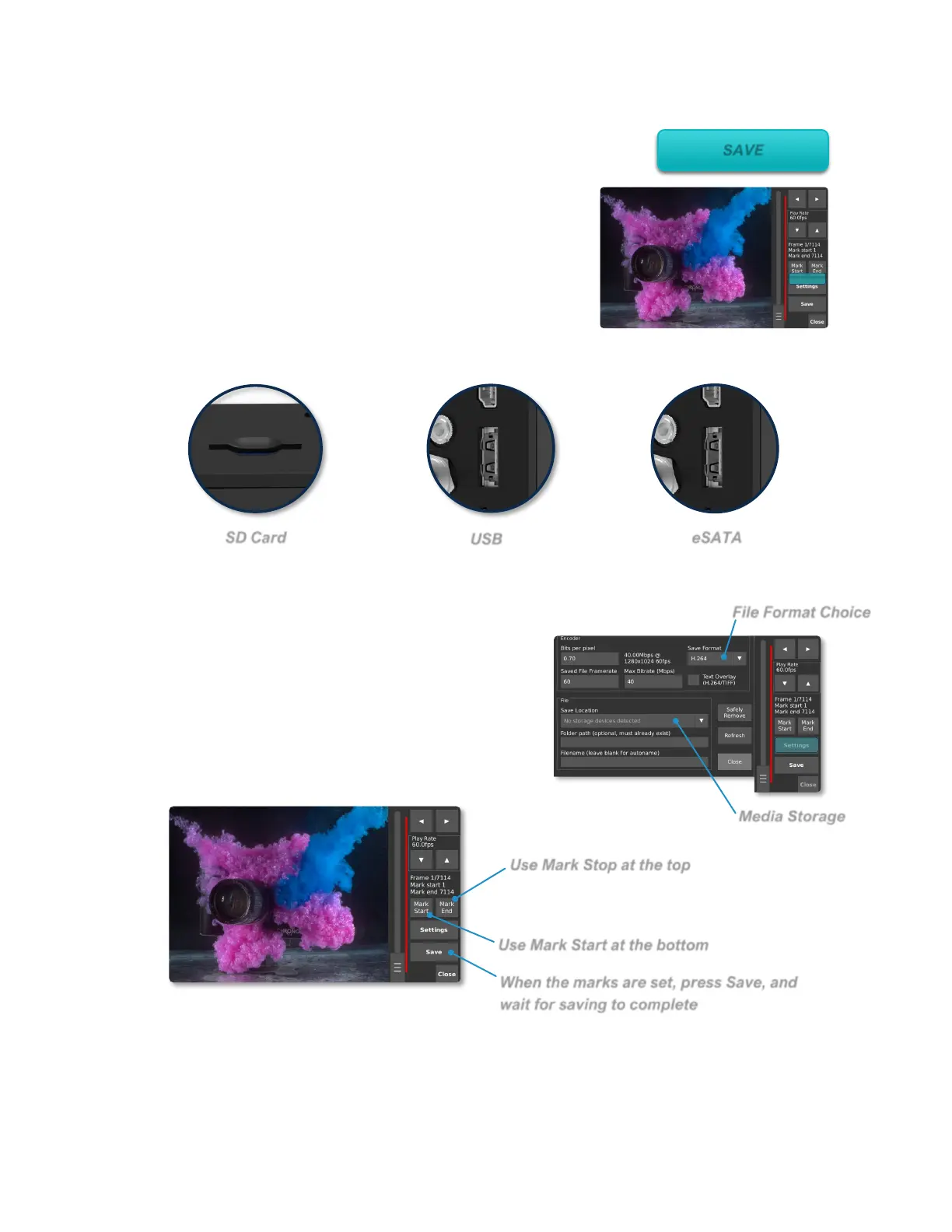 CinemaDNG and TIFF formats, to removable storage
