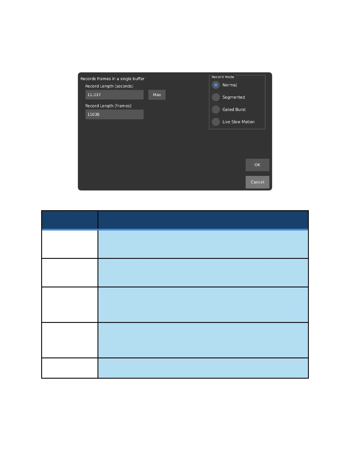 Set the duration of the triggered recording, in recorded frames. The timing of