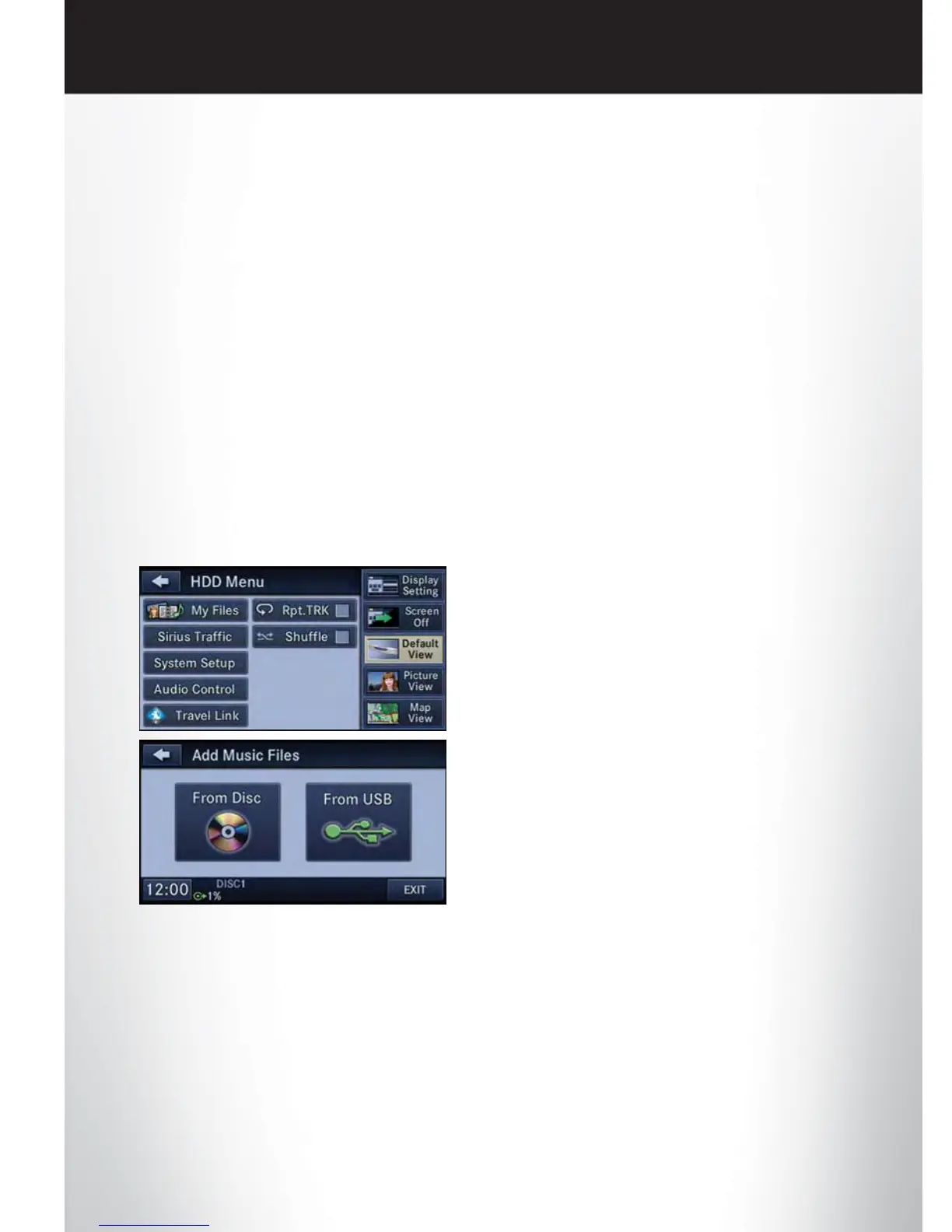 • Touch the “Add Music Files to HDD”