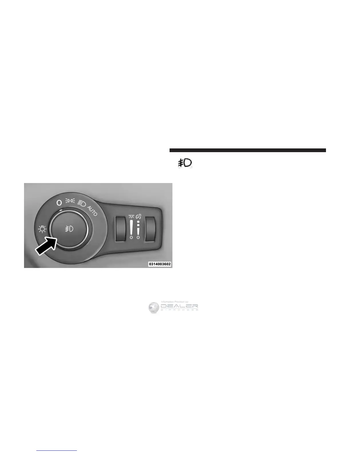NOTE: The fog lights will operate with the low beam