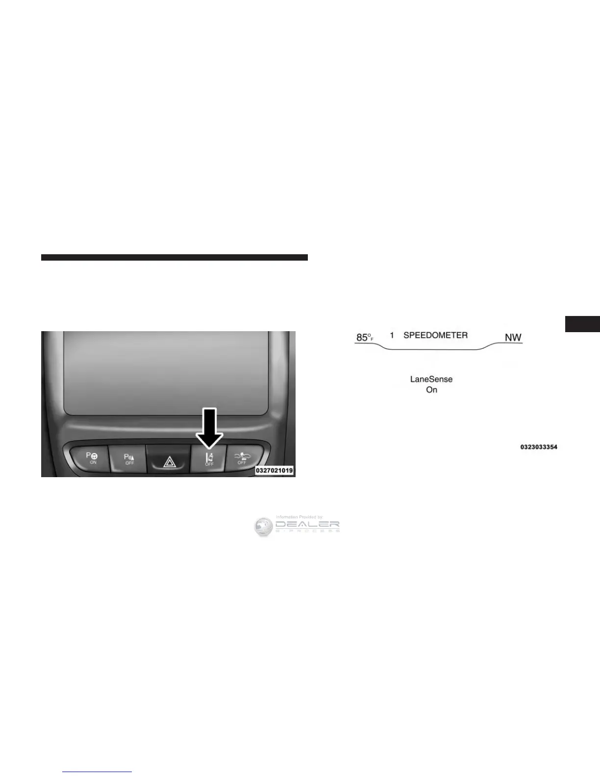 button (LED turns off). A “Lane Sense On” message is