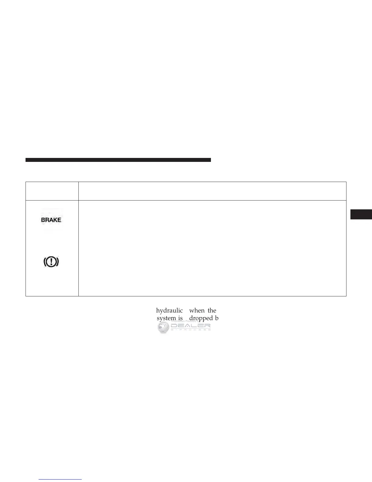 indicated by the Brake Warning Light, which will turn on