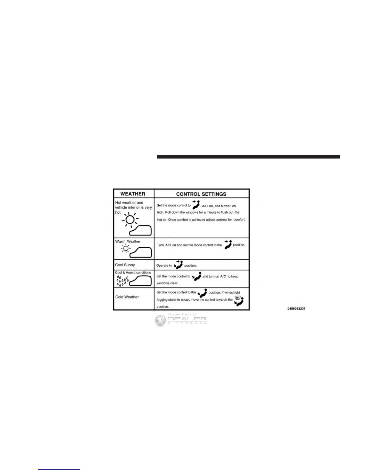 Control Setting Suggestions For Various Weather Conditions