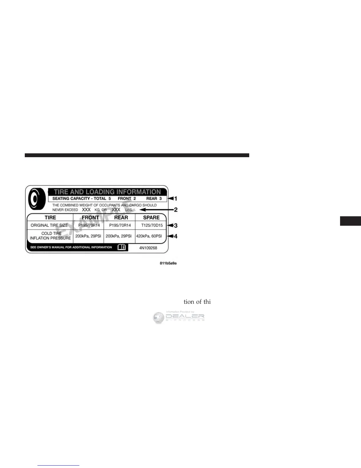 4. Cold tire inflation pressures for the front, rear, and