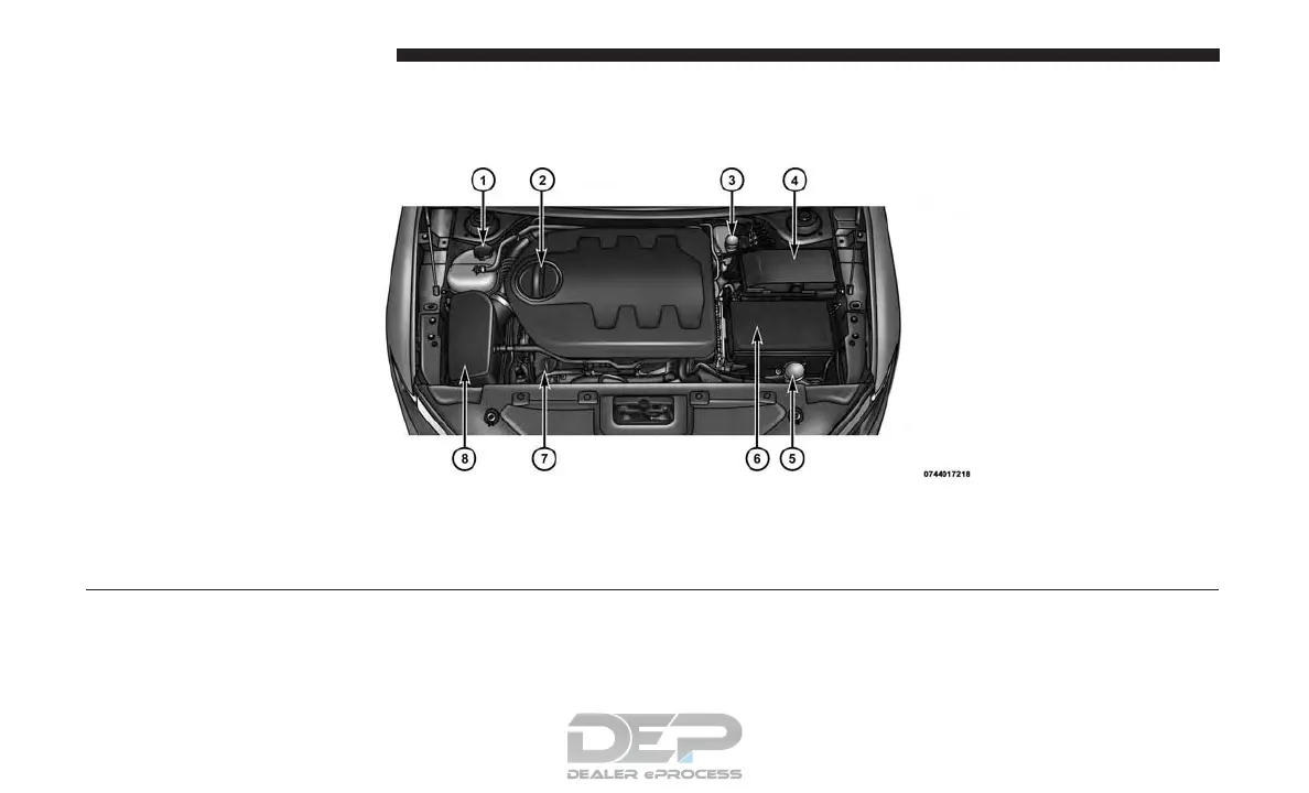 3 — Brake Fluid Reservoir 7 — Engine Oil Fill