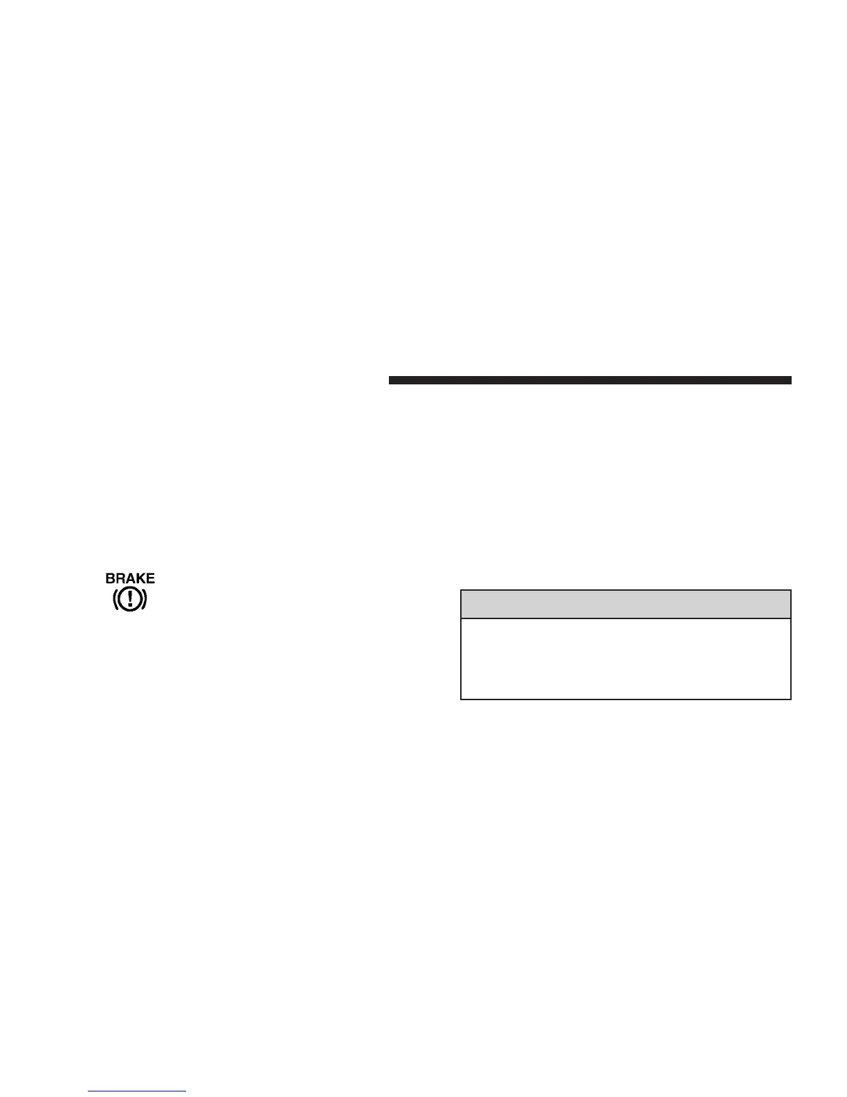 indicated by the Brake Warning Light which will turn on