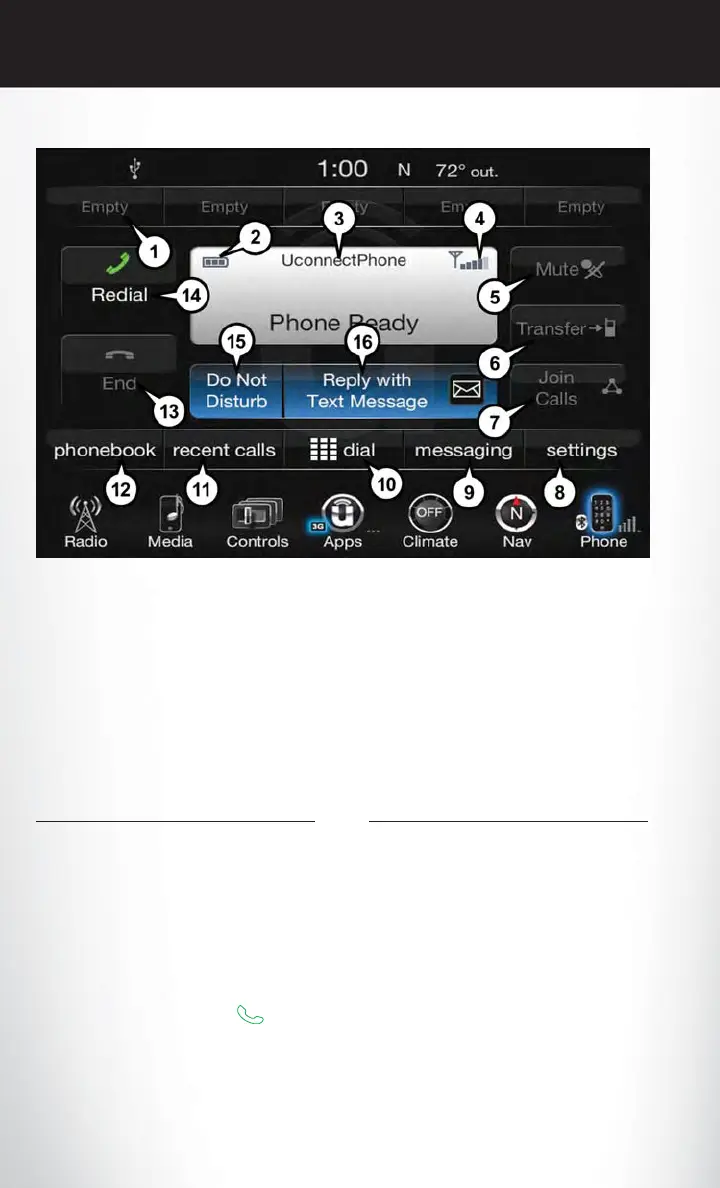 The Uconnect Phone feature enables you to place and receive hands-free mobile phone calls.