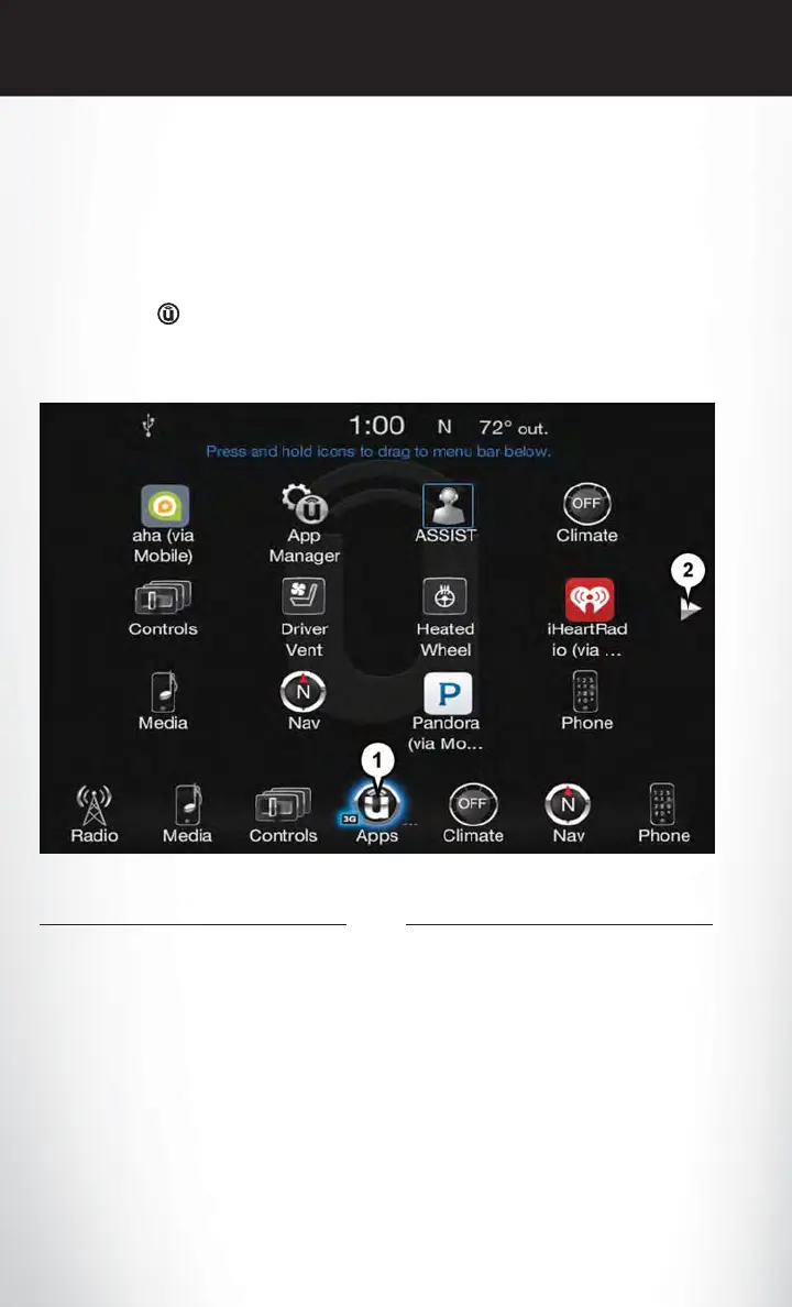 ing button on the touchscreen and you will be directed to that App. To view the rest our your