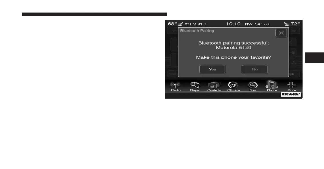 Uconnect™ Phone will display an in process screen