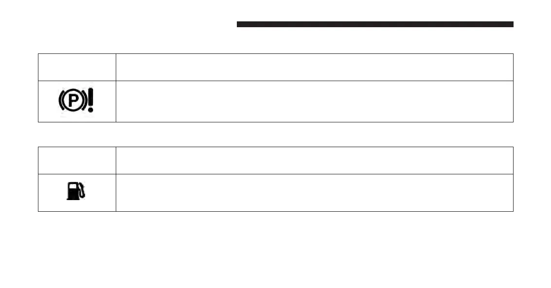 When the fuel level reaches approximately 1.5 gal (5.8 L) this light will turn on, and remain