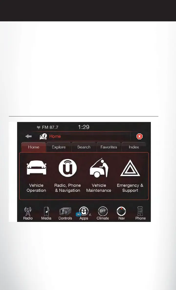 To access the Vehicle User Guide on your Uconnect Touchscreen: Push the Uconnect Apps