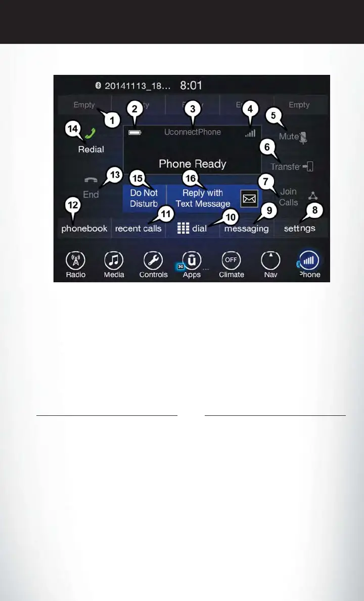 The Uconnect Phone feature enables you to place and receive hands-free mobile phone calls.